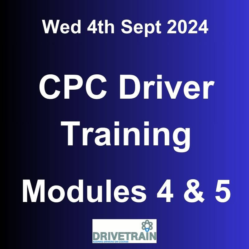 Driver CPC Training September 2024 Modules 4 and 5 on Wednesday the 4th of September 2024 contains the following course information: